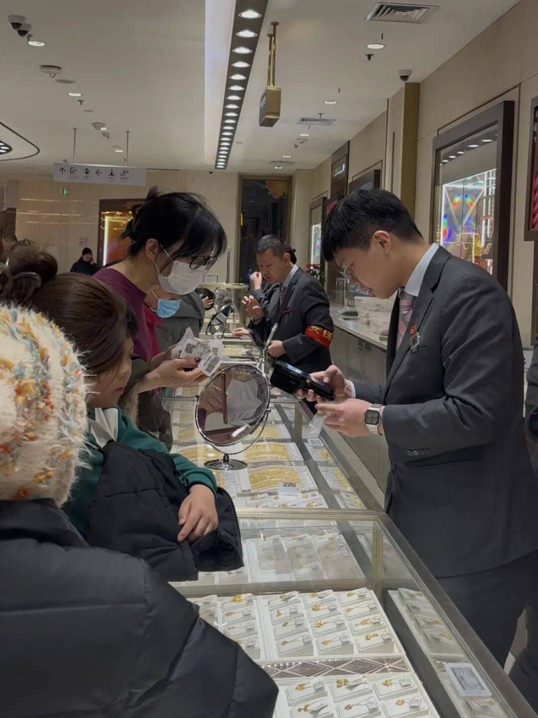 商场内,一对情侣刚花了6万多元购置了三金。“我们去年10月份就来看三金,当时还不到1000元,觉得贵就没买,没想到又涨价了。”