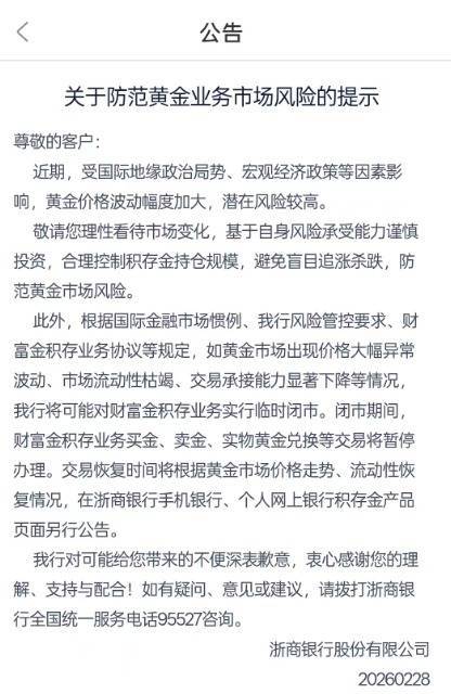 随着中东地缘局势趋紧,已有银行率先发布风险提示,通过收紧贵金属交易相关业务以应对金价大幅波动带来的潜在风险。