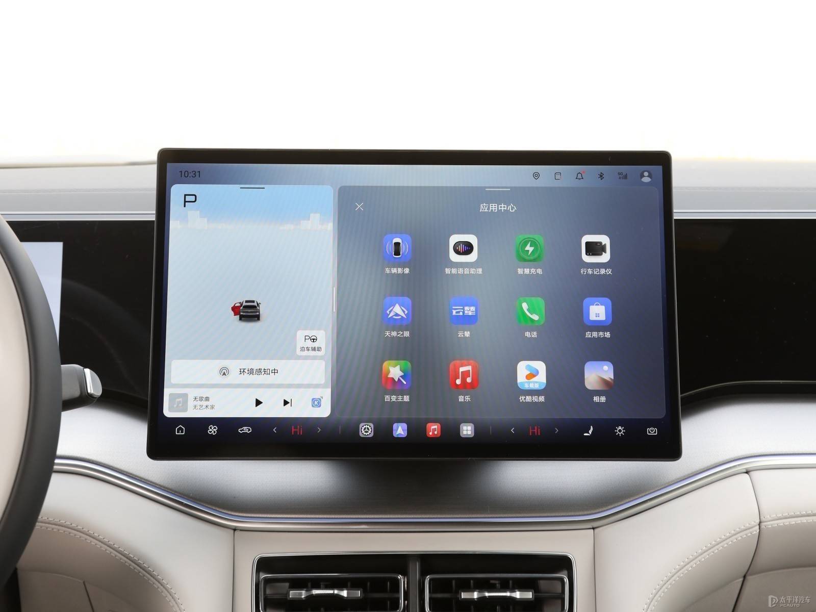 辅助驾驶方面,宋Ultra EV搭载天神之眼C-辅助驾驶系统,支持高速领航辅助驾驶,还可选装天神之眼B-辅助驾驶激光版(DiPilot 300),配备天神之眼5.0搭载最新大模型版本,支持城市领航辅助(CNOA)、高快领航辅助(HNOA)、全场景智能泊车辅助等功能。